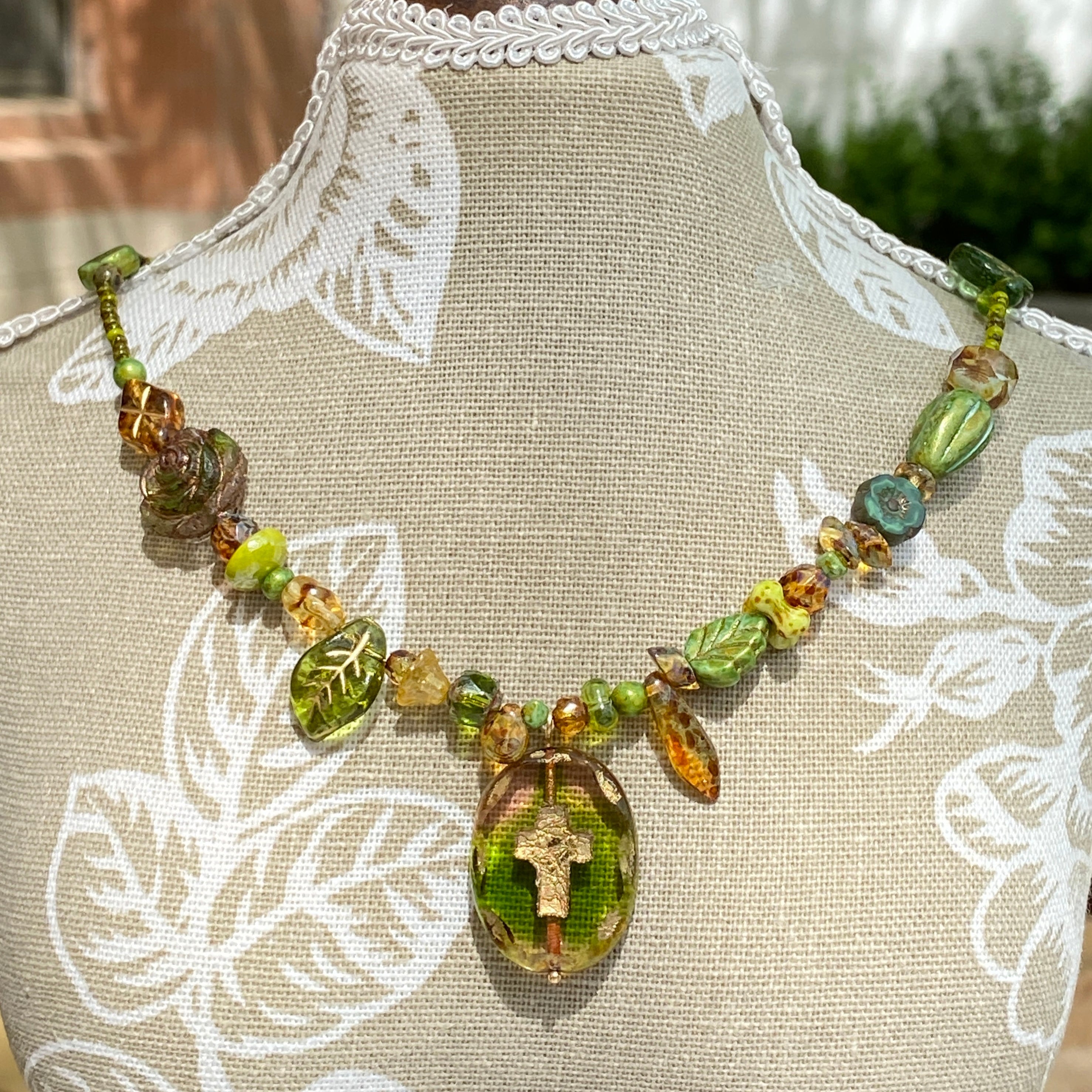 Forest Ritual is a handmade beaded necklace inspired by untamed nature — the kind that hums under moss and settles on your skin like mist.