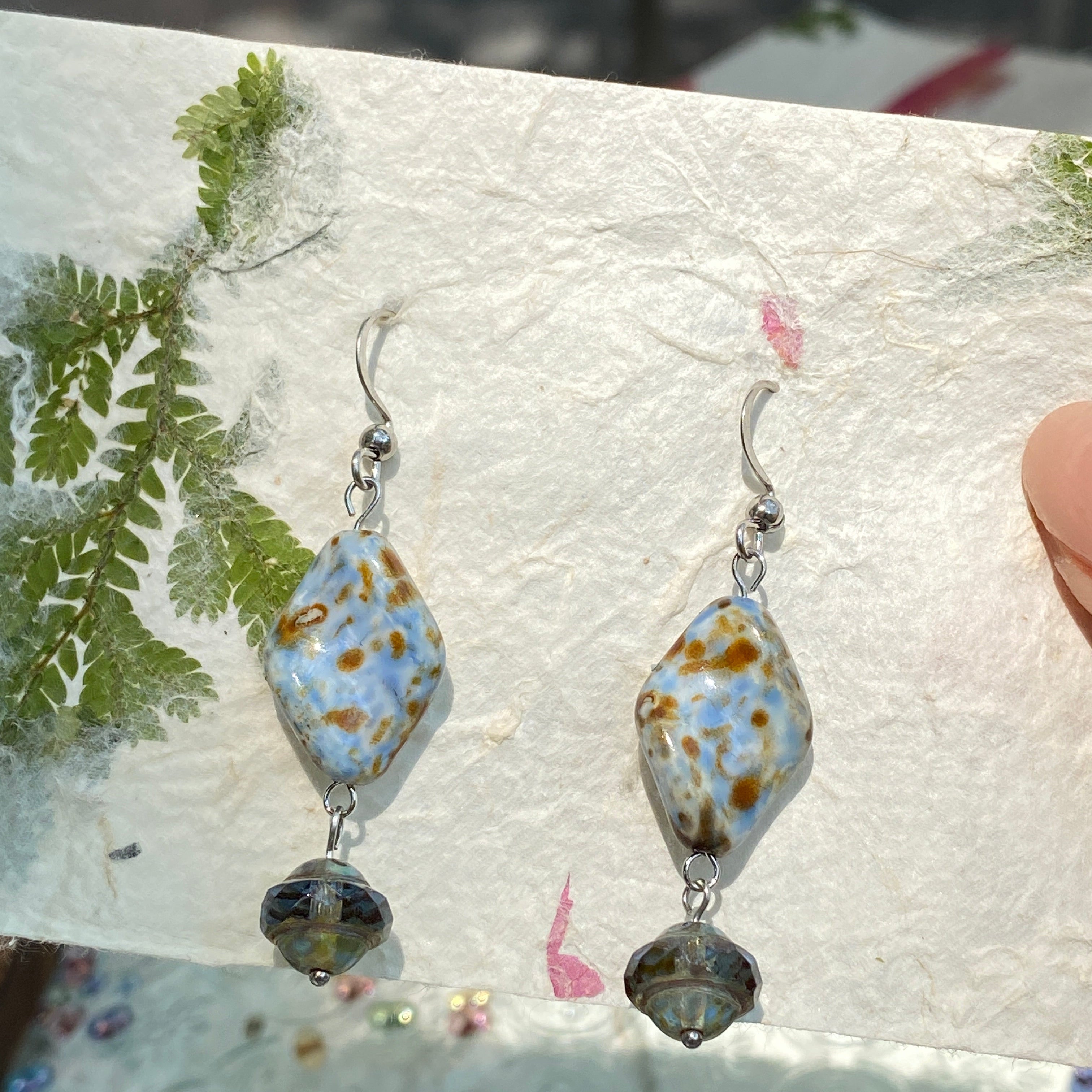 Each pair is handcrafted with Czech Picasso-finish beads and 925 sterling silver, forming a composition that feels both ancient and quietly modern.
